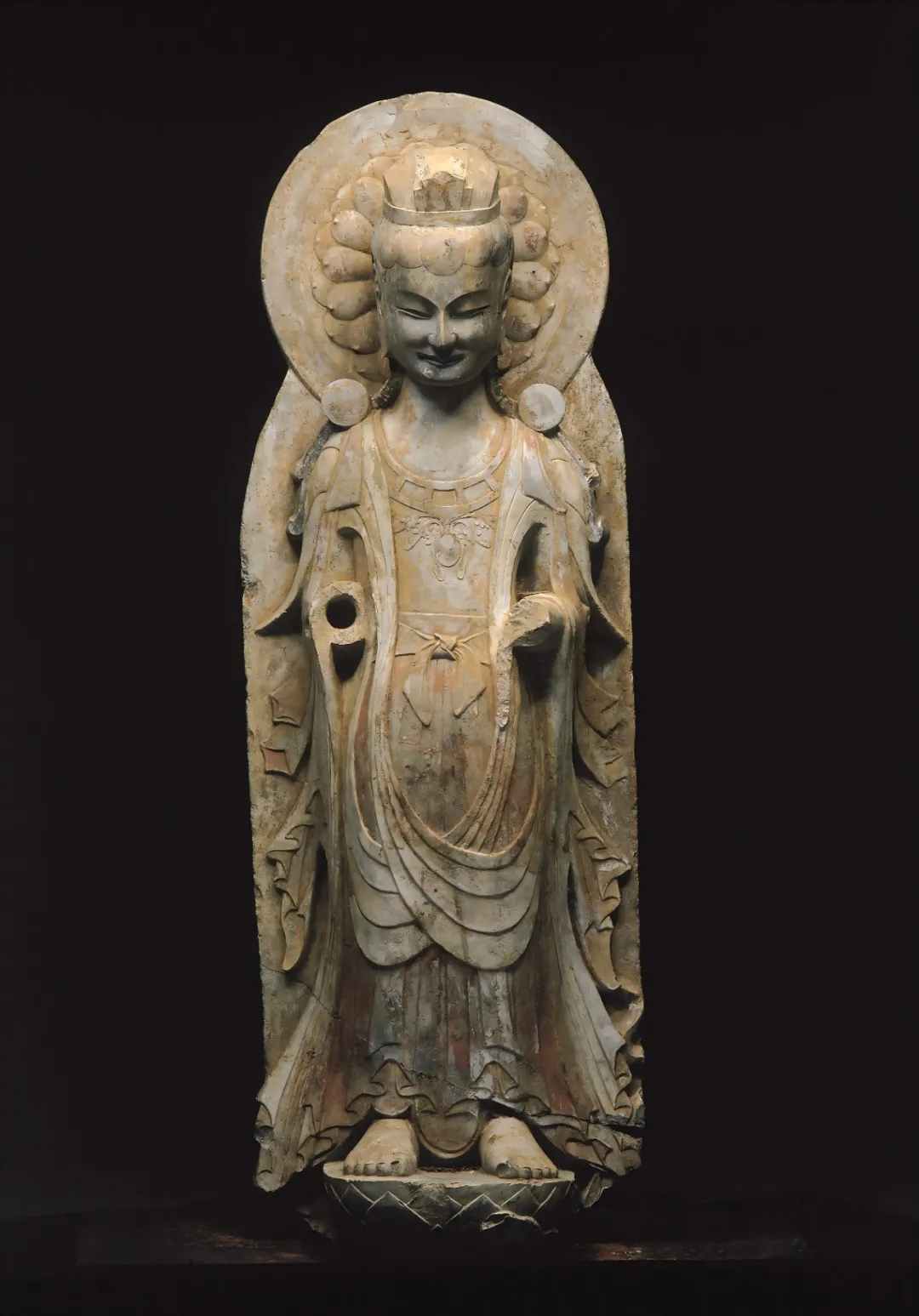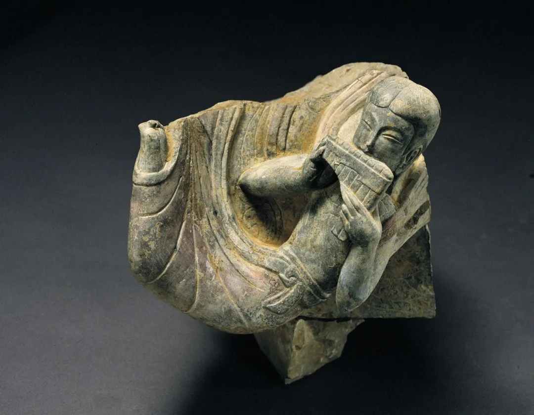 彩绘高浮雕飞天像,北魏晚期至东魏,山东省青州市龙兴寺遗址窖藏出土,青州市博物馆藏