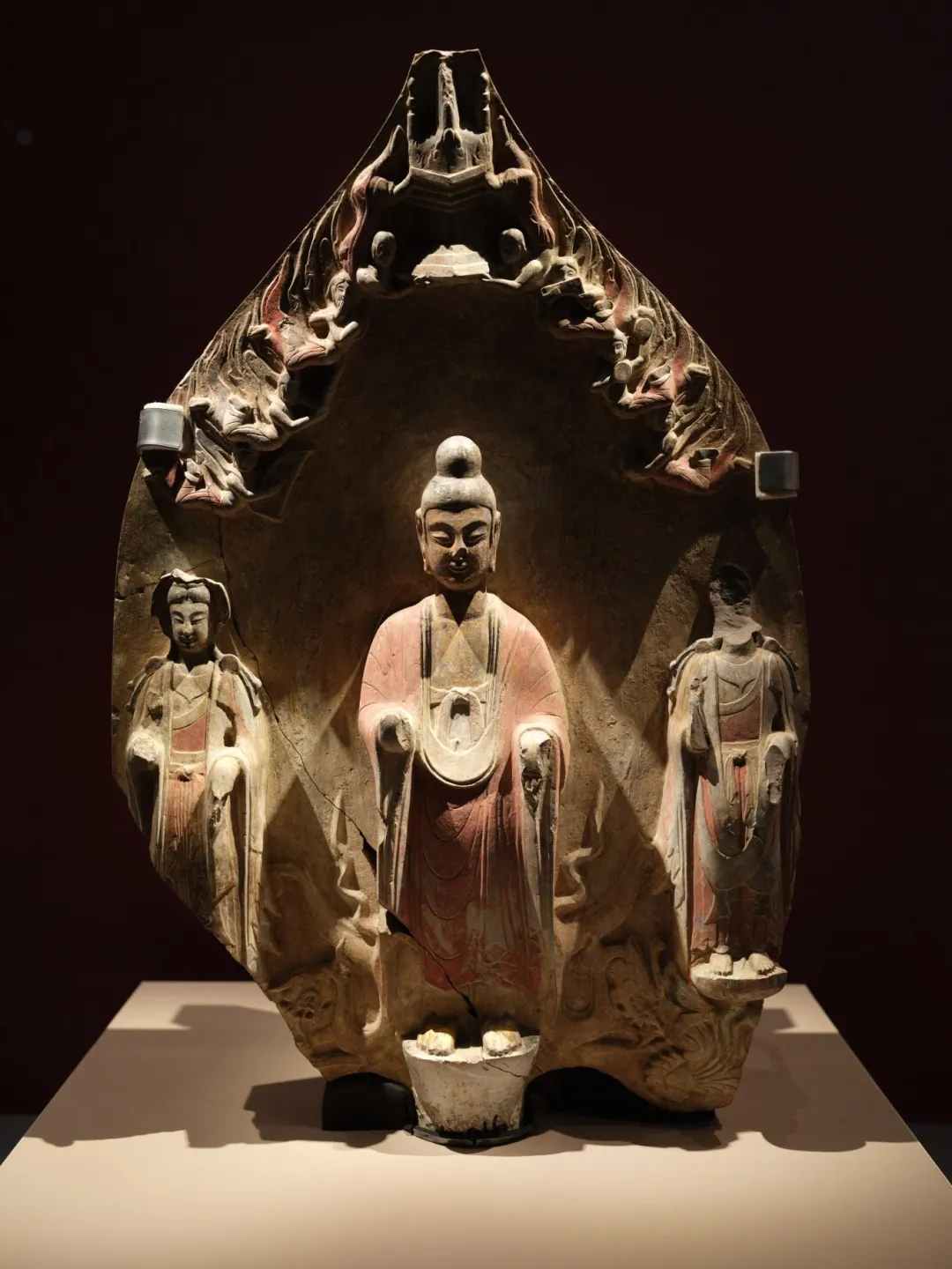 贴金彩绘背屏式佛菩萨三尊像,东魏,山东省青州市龙兴寺遗址窖藏出土,青州市博物馆藏