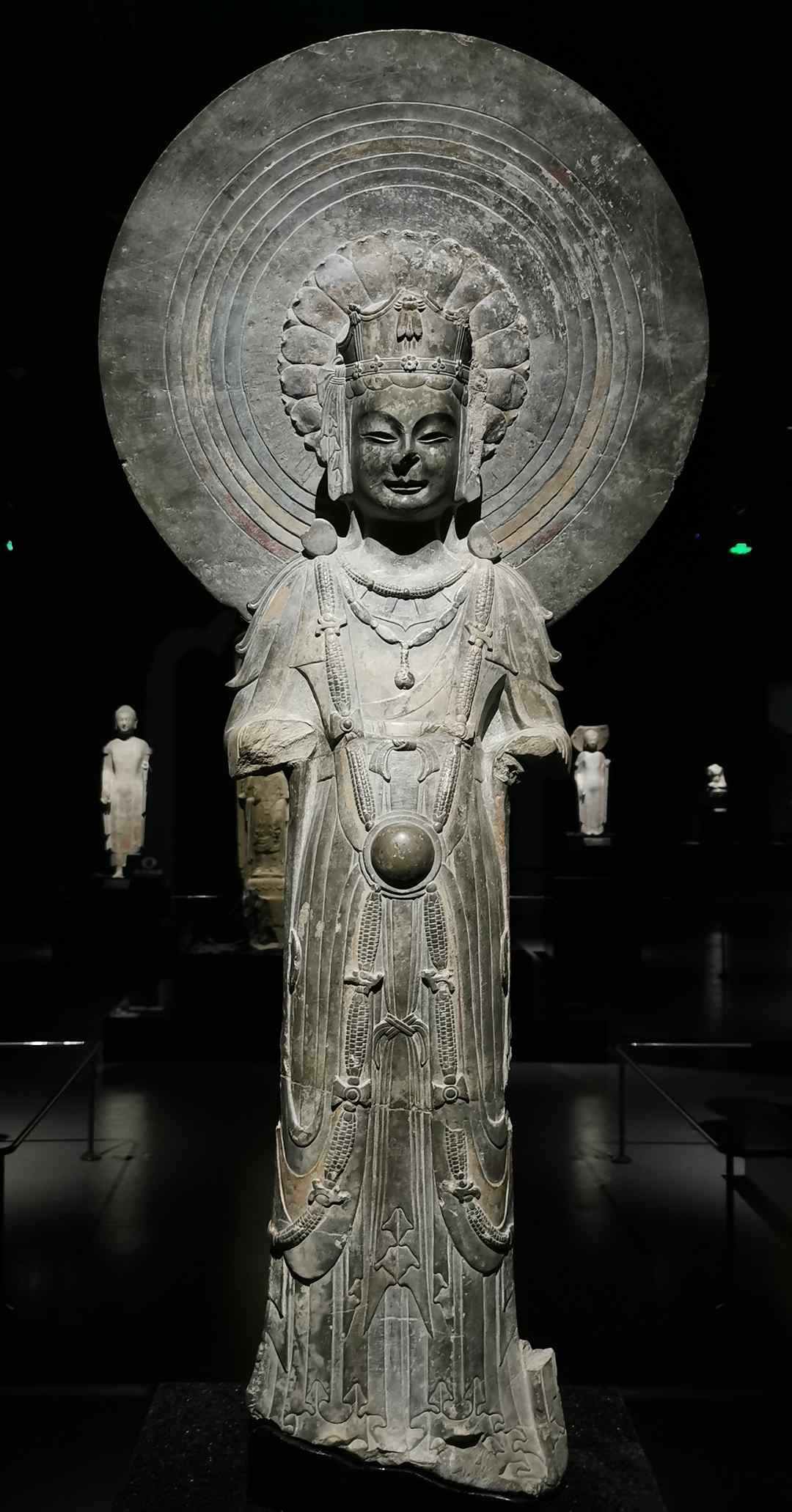 青州是历史上古九州之一,是古代中国海陆丝绸之路的重要枢纽,特殊的地理位置造就融合南北朝「褒衣博带」「秀骨清像」和印度笈多「湿衣」风尚的佛像风格。壮美的高浮雕背屏、工巧的单体圆雕和充满东方韵味的「微笑」,构成青州佛像的独特魅力。