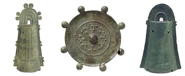 袈裟襷纹铜铎,京都府与谢郡与谢野町比丘尼城出土,日本弥生时代后期(3世纪),日本重要文化财产