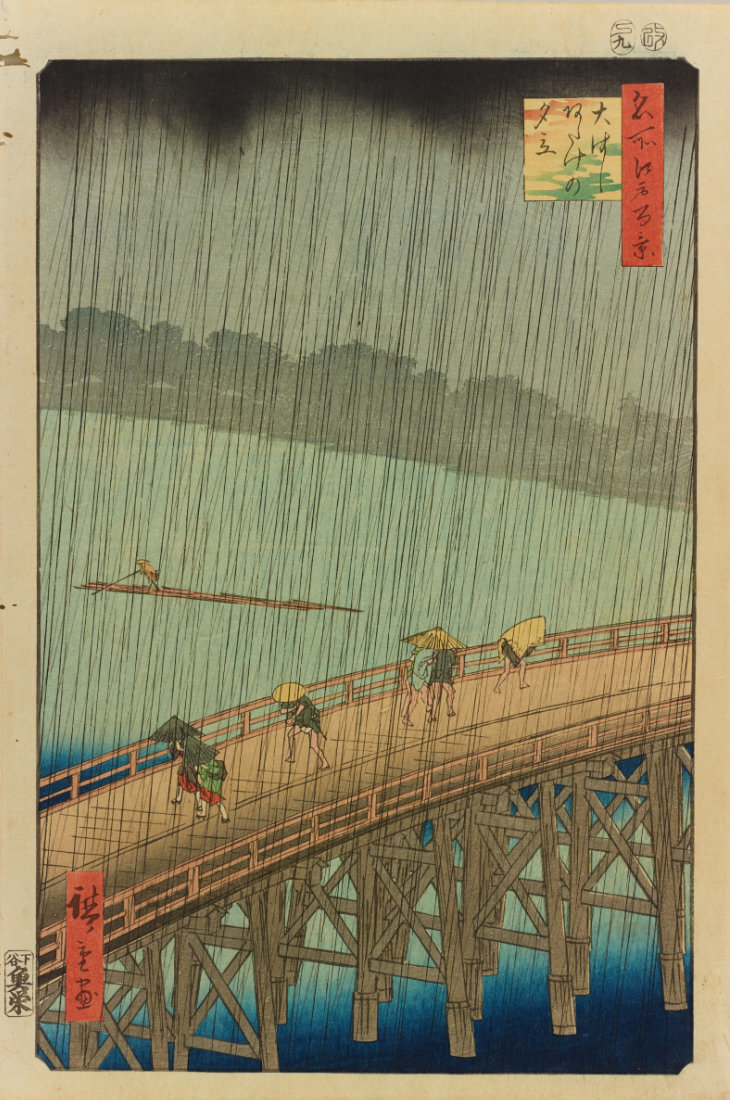 《名所江户百景 大桥安宅之夕立》,歌川广重