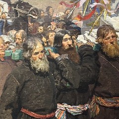 1878年,列宾正式加入巡回艺术展览协会。该协会简称「巡回展览画派」或「巡回画派」,是19世纪下半叶至20世纪初俄罗斯一个重要的艺术家组织,因在各城市巡回展出画作而得名。该协会成员主张艺术为普通人服务,以现实主义手法表现俄罗斯社会各个阶层真实的生活面貌。