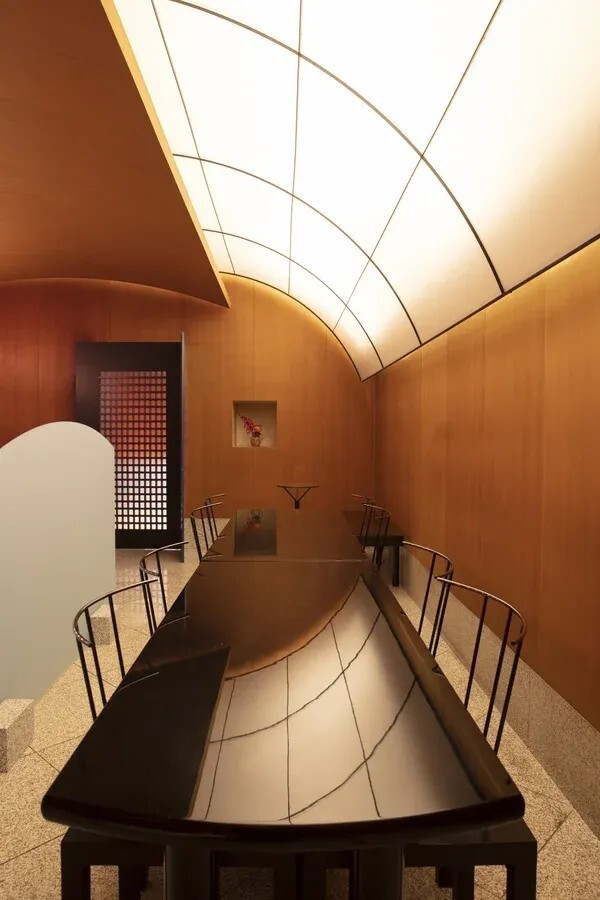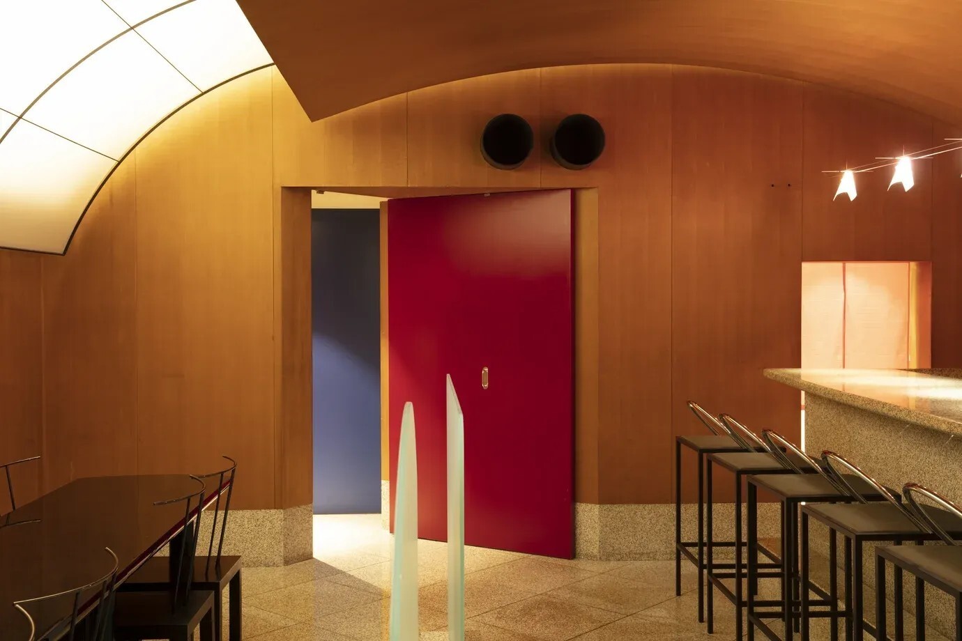 东京清友寿司吧由日本设计师仓俣史朗设计,1988年在东京新桥区开业。店内双层的拱形天花板、冷硬的花岗石寿司吧台和简约的室内装潢,为品尝寿司营造出剧院般的庄严氛围。设计中的光暗反差、线条流动及质感对比,充分展现仓俣史朗对物料和形态的感知。清友寿司吧于2004年结业,2014年由 M+ 购藏,整体拆卸并运到香港重建,是少数出自仓俣史朗之手而完整保留下来的室内设计作品之一。