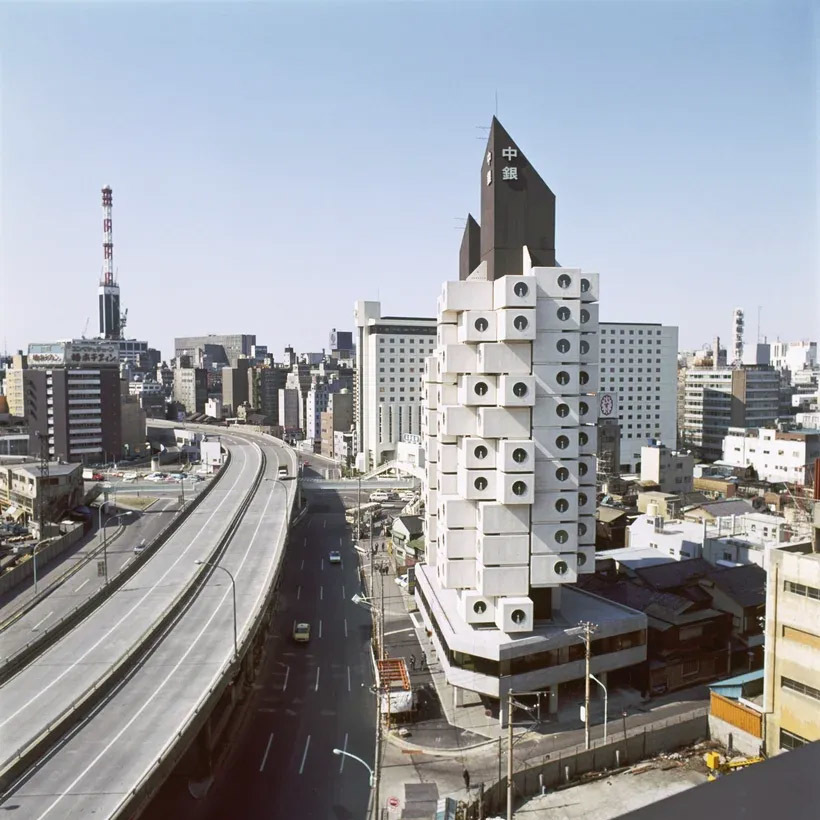 日本东京的中银胶囊大楼外部景观,1972年,摄影:大桥富夫