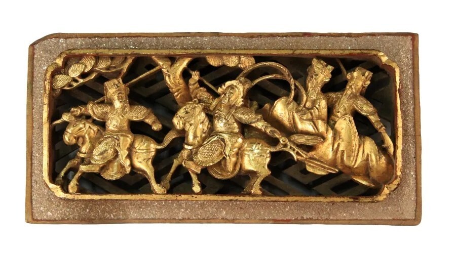 浮雕人物故事纹漆金木板,清代