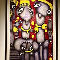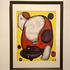 艾玛的绘画色彩缤纷而又独树一帜,通过夸张的造型、明艳的色彩,充满张力的画面,表现艺术家非凡的想象力。「眼睛」和「手指」是艾玛作品中特有的象征符号,是她探索世界、思考生命意义的标签。