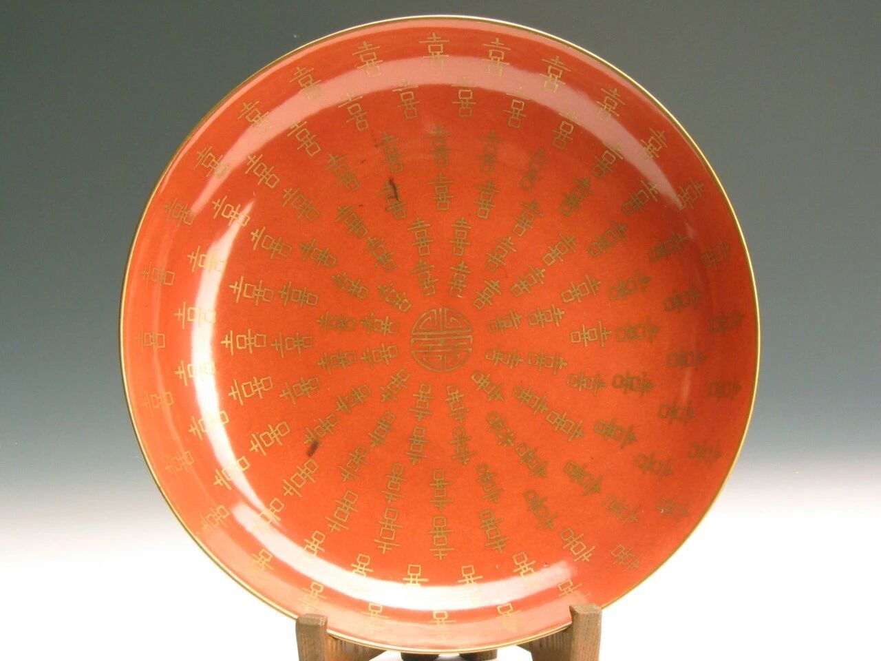 同治十一年(1872)同治皇帝大婚,景德镇御窑厂为此专门烧造了1万余件瓷器。本次展出的粉彩黄地梅鹊大碗、羹匙、小碗、盘,粉彩红地喜字盘、大碗等,均为同治皇帝大婚用瓷。