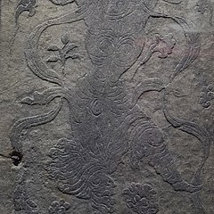 第三单元「长安胡风」突出海陆丝绸之路对于东西方文化交流的促进作用,再现世界文化在唐代都城长安的汇聚与融合。展品包括浮雕胡旋舞石门、波斯萨珊朝胡瓶、西方神祇人物连珠饰牌银腰带、枫叶纹描金蓝色琉璃盘等。