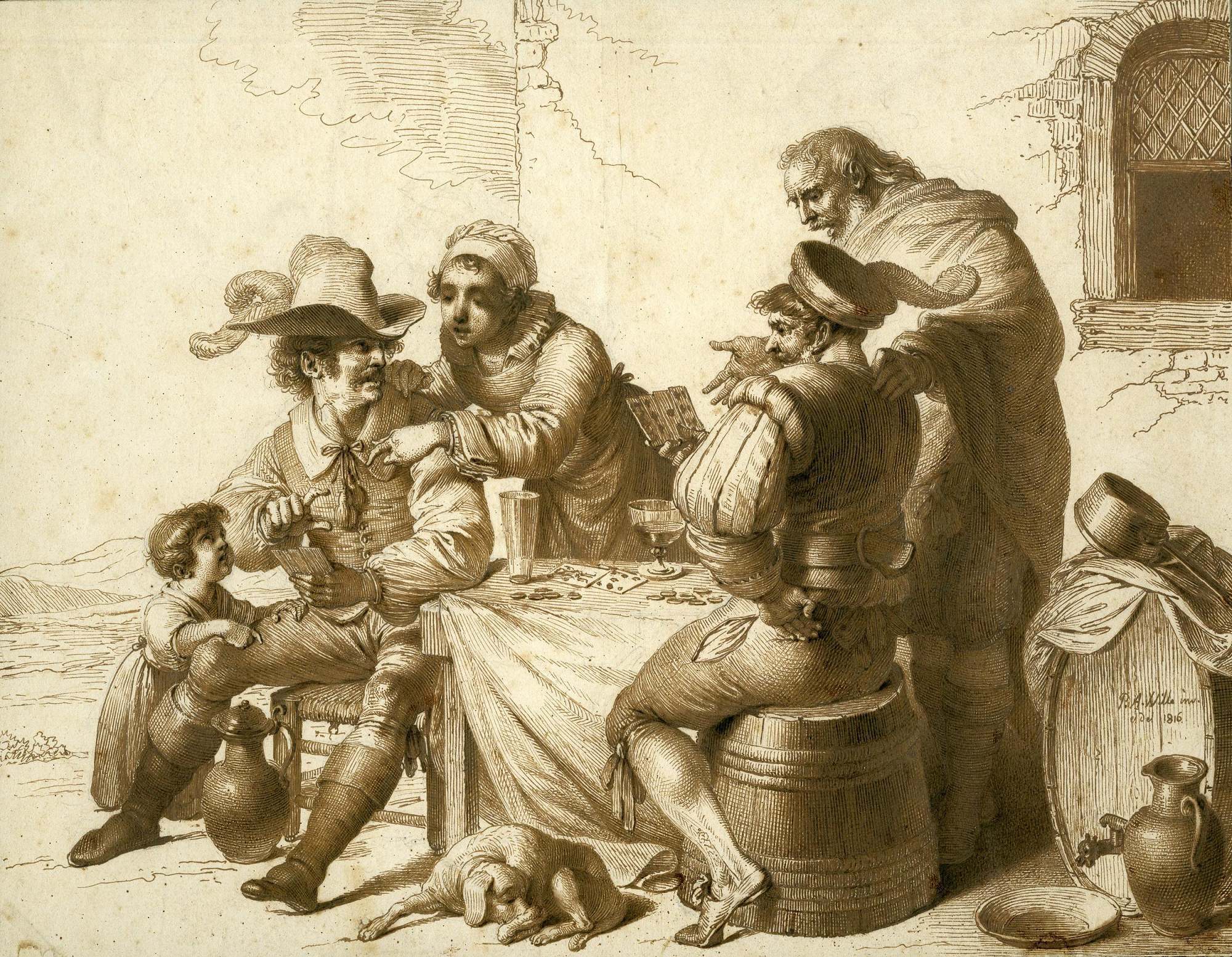 《农民玩牌》,Pierre Alexandre Wille,1816年