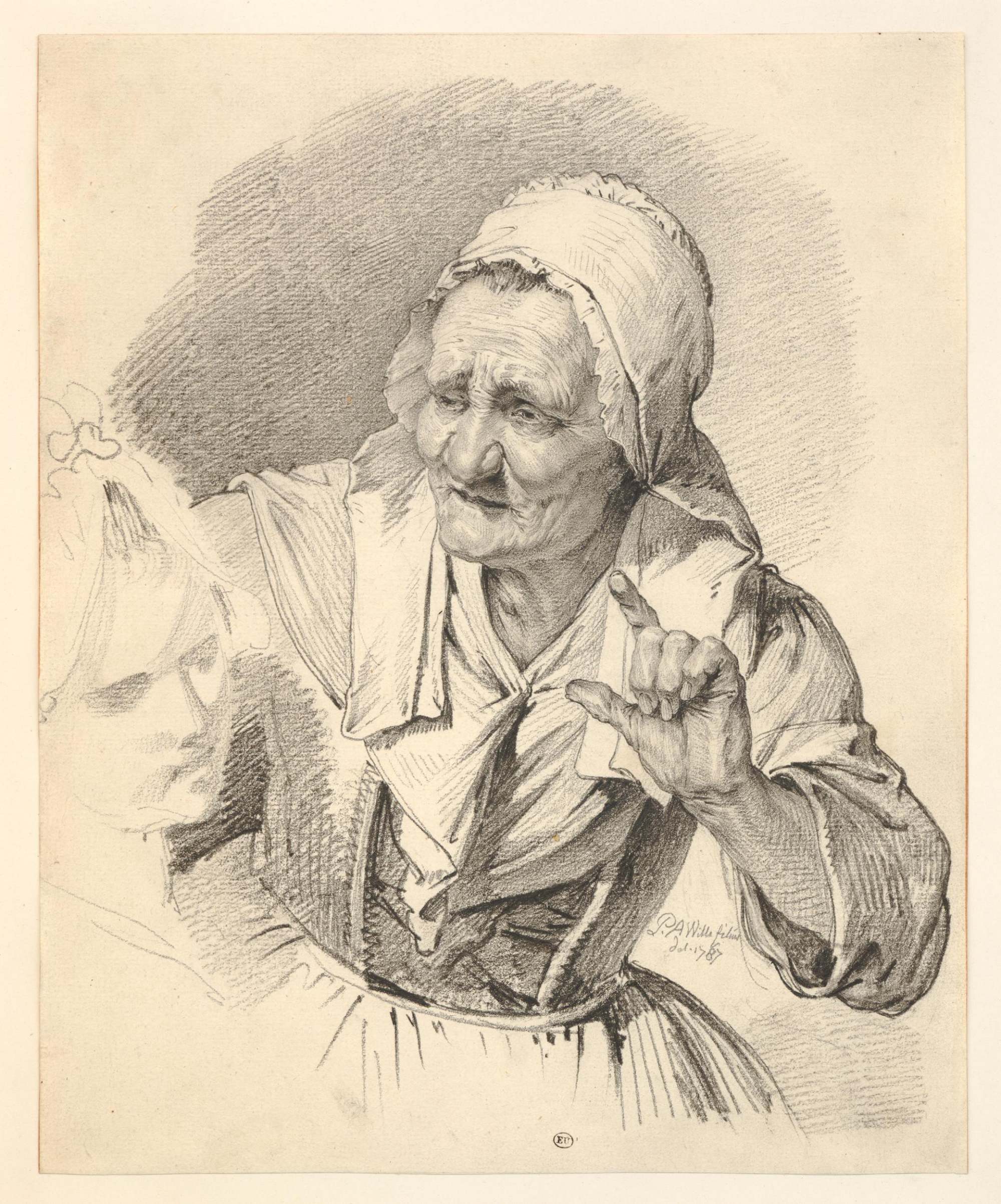 《抬起左手的老妇》,Pierre Alexandre Wille,1787年