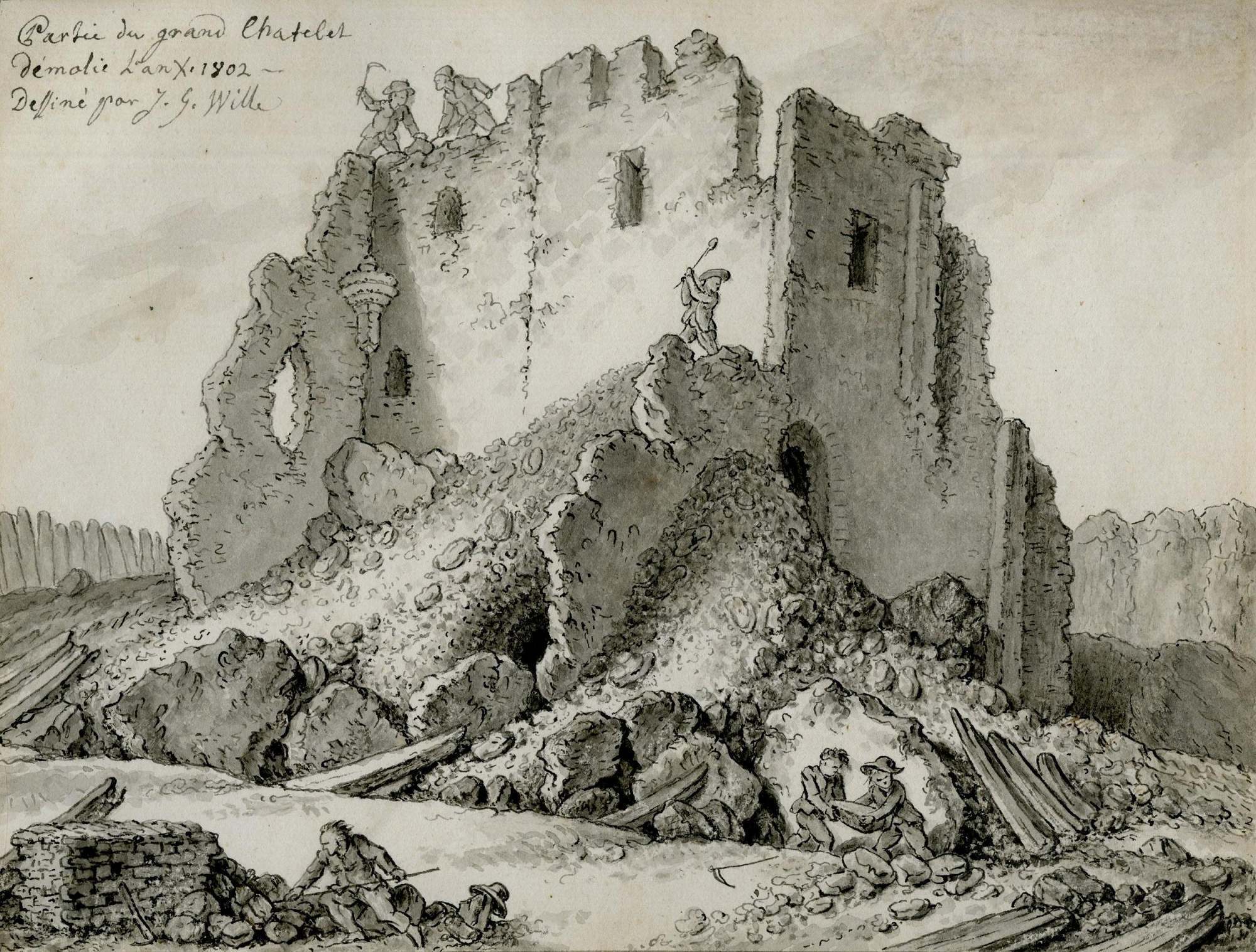 《摧毁大沙特莱堡垒》,Jean Georges Wille,1802年