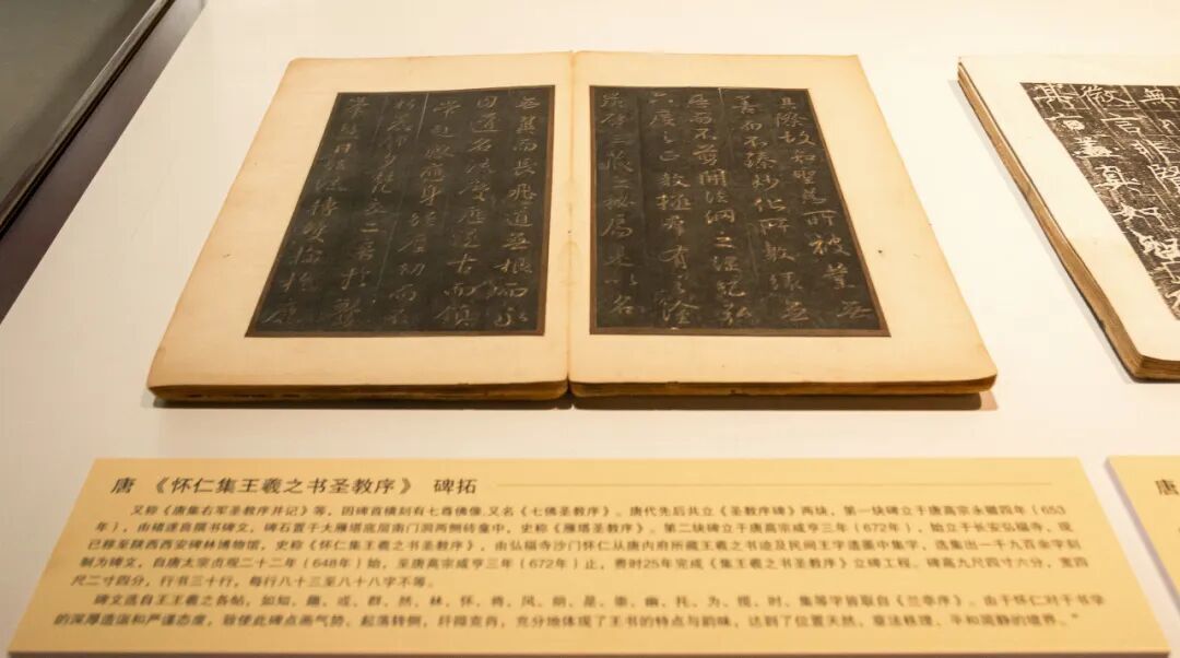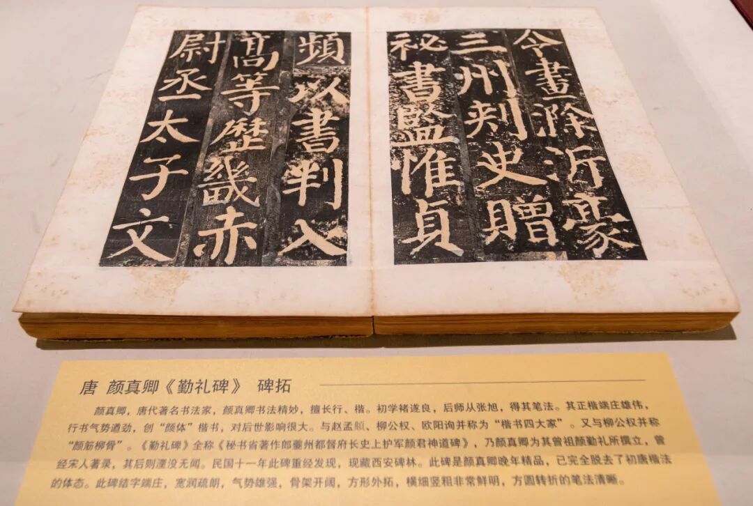 亮点展品包括东汉《张迁碑》碑拓、隋代《青州舍利塔下铭》拓片、唐代《怀仁集王羲之书圣教序》碑拓、唐代颜真卿《颜勤礼碑》碑拓等。