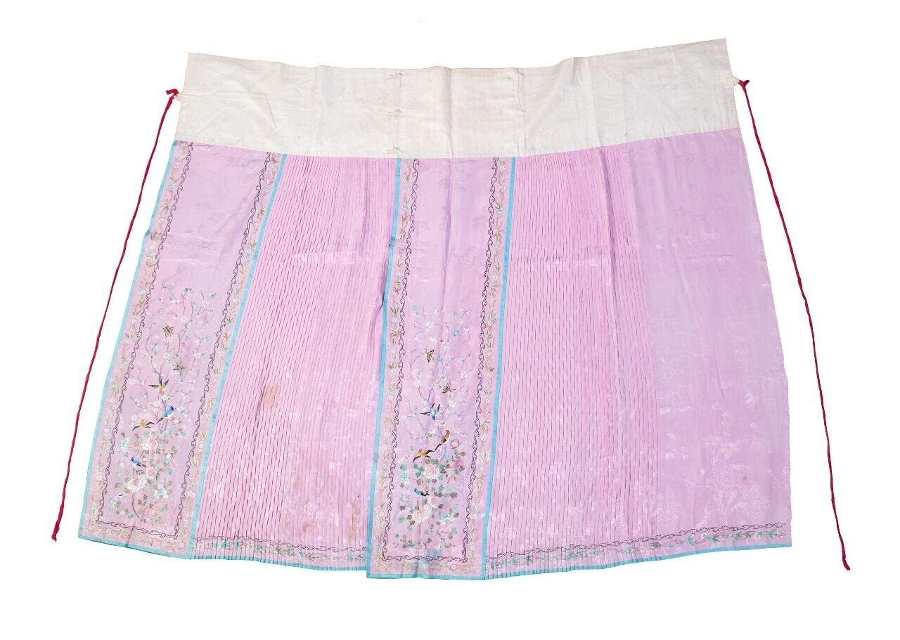 粉红暗花绸绣花鸟纹鱼鳞马面裙,20世纪初,广州博物馆藏