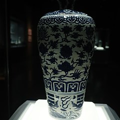 梅瓶作为一种具有储酒实用、陈设装饰等多重用途的器物,始见于唐代,流行于宋代,元明清时期随着景德镇青花瓷器的大量烧造而日趋风行。其各个时期的造型虽有不同,但大致不离短颈,小口,丰肩,圆腹,敛腰,窄胫等基本特征。