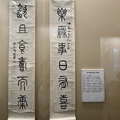 纵观清代篆书历史,大致可分为早、中、晚三期,早期是以王澍等为代表的「复古」阶段,中期是以邓石如等为代表的「变革」阶段,晚期则是以吴昌硕等为代表的「融彻」阶段。第一单元展品包括书法家王澍的篆书七言联,结字匀称端庄,法度分明,圆润婉转。
