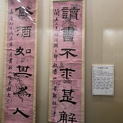 清代学术风气的转变同样促进了隶书的复兴。清代隶书直追古法,取法魏晋铭碑、唐碑,并在此基础上向汉碑字体回归,在继承汉代隶书后又赋予新的精神。第二单元重点展品之一是篆隶中兴先驱伊秉绶的隶书五言联,呈现其「融颜入隶」的独特风格。