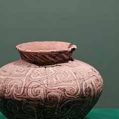 展览划分序章「五行始终」以及「启、丽、光、华」四个叙事单元。第一单元「启」聚焦新石器时代的纹饰纹样,亮点展品包括仰韶文化人面鱼纹尖底器、良渚文化神人兽面纹玉琮等,这些古拙质朴的纹样体现了先民在手艺与审美形成初期的探索。