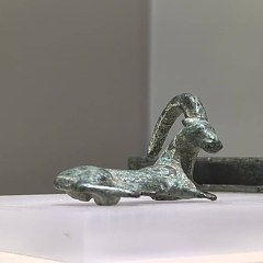 推测为编钟的底座,后颈、尾部有铭文「阜平君外乐虡象」和「十五年三月铸 百益」。