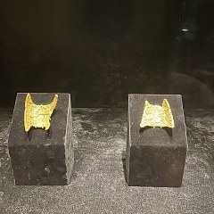 楚怀王颁发给儿子、鄂君「启」用于水陆运输的免税通行证,通体由青铜铸造并配以错金铭文。