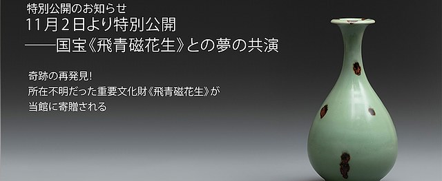 此次美术馆新获赠的「飞青瓷花生」曾属于日本实业家松元枩藏旧藏,于1935年被指定为「国宝」,1950年被重新指定为「重要文化财产」,近年一度下落不明,曾被列入日本文化厅《下落不明的国家指定文化财产(美术工艺品)》名录。