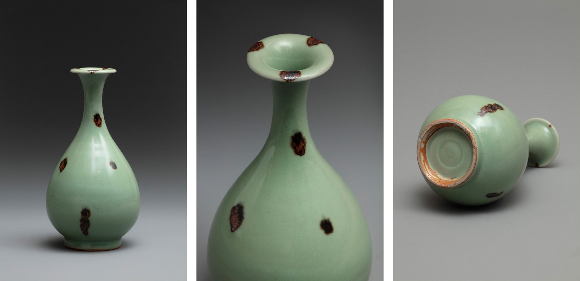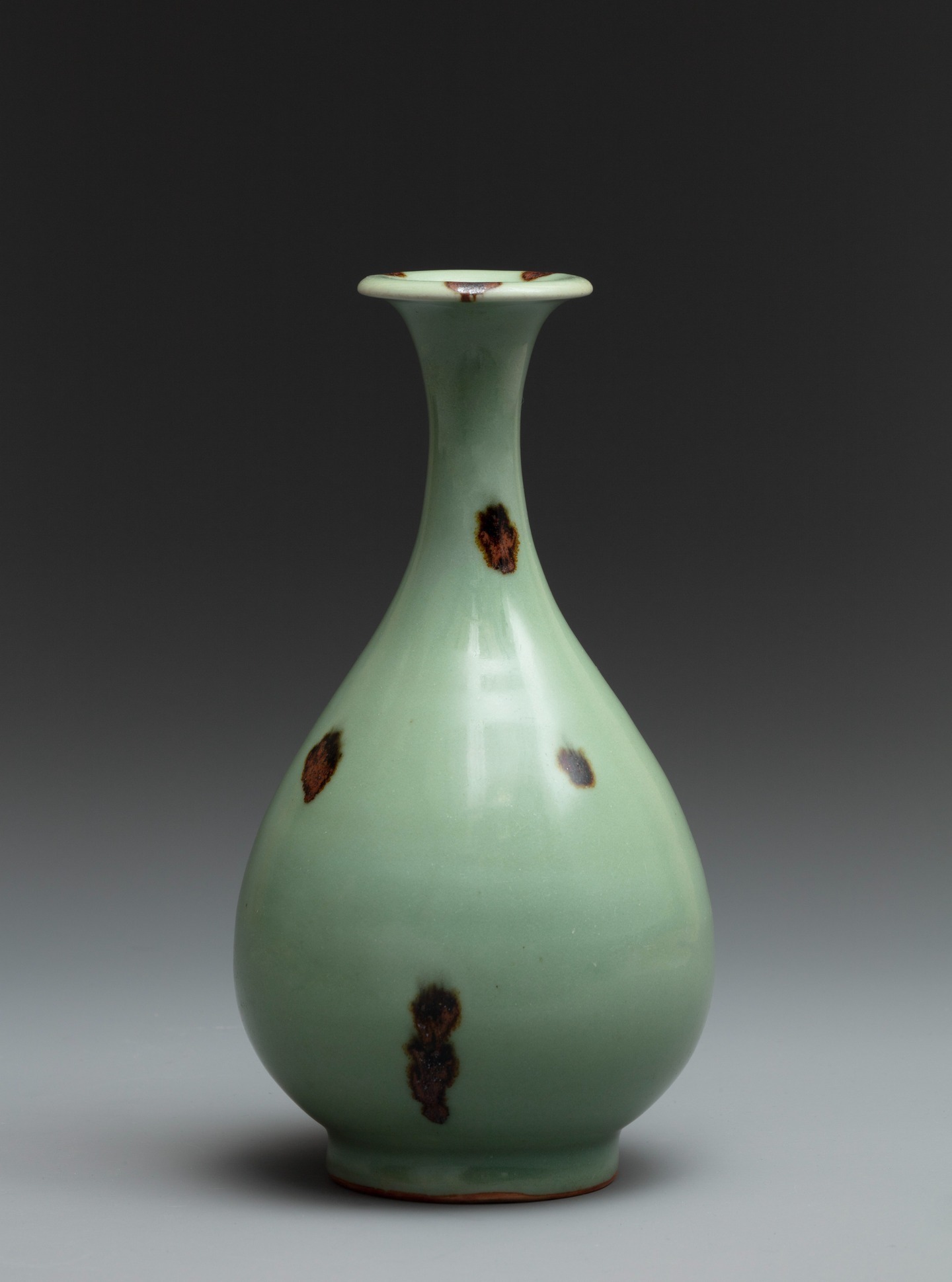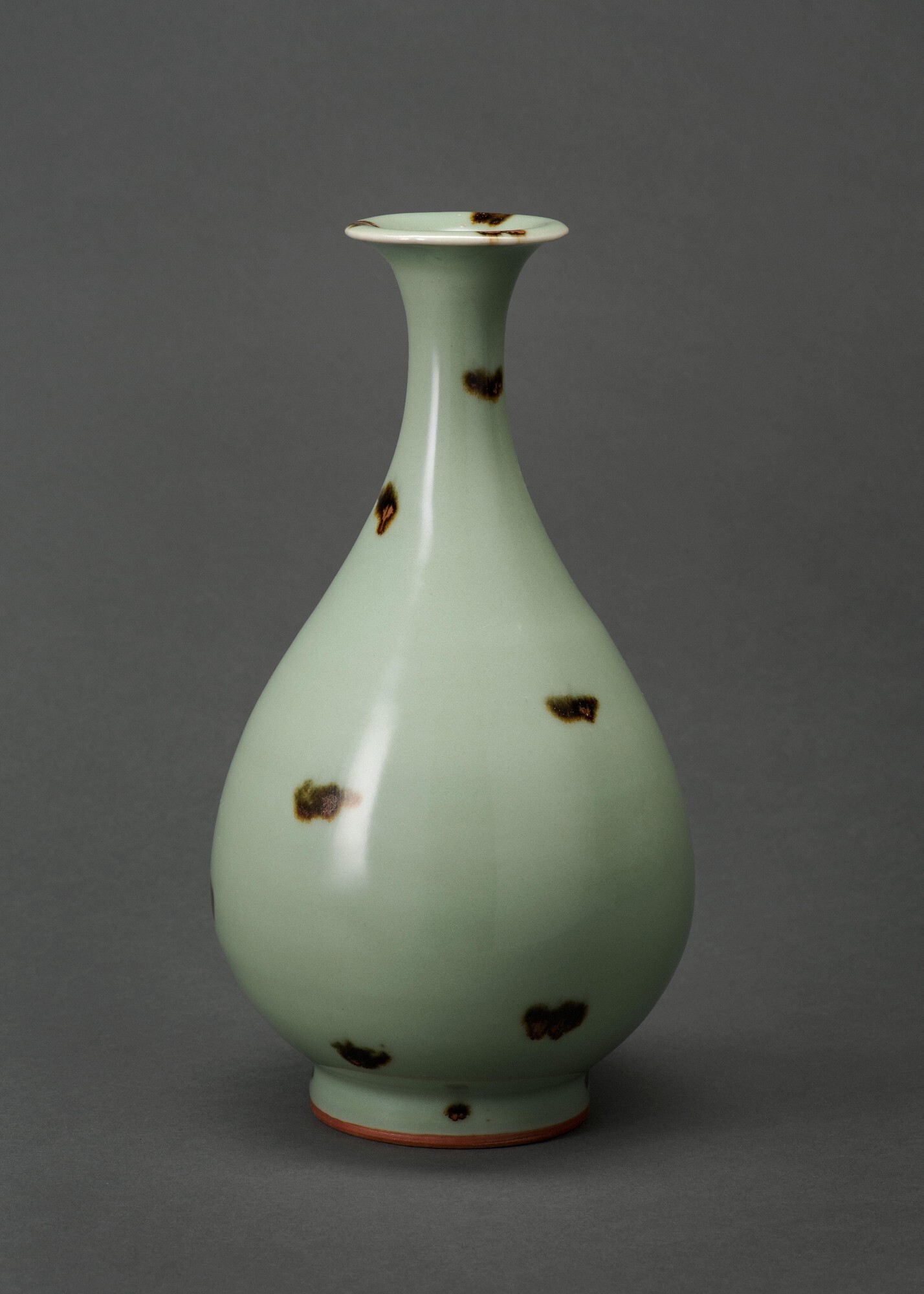 飞青瓷花生(青瓷褐斑玉壶春瓶),龙泉窑,中国元代(14世纪),大阪市立东洋陶瓷美术馆藏,匿名人士捐赠