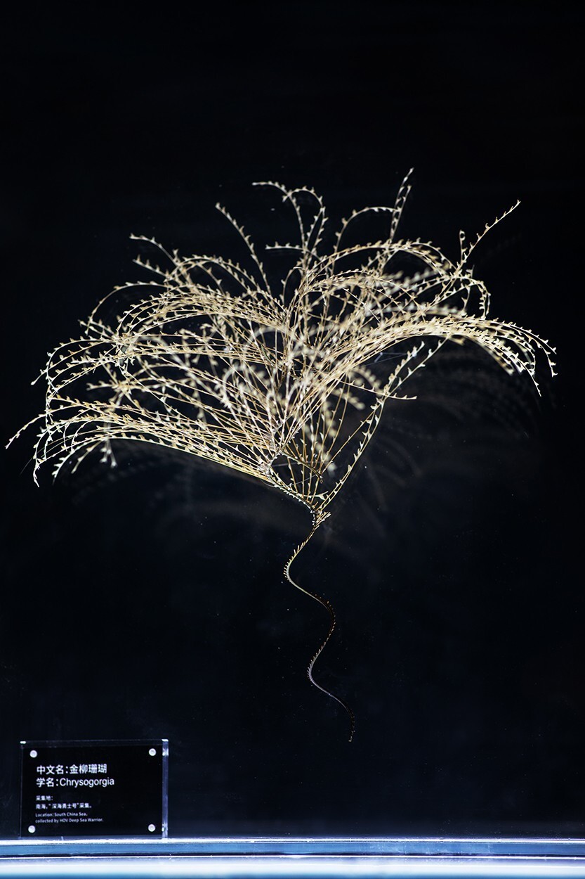 展览亮点在于集中展示中国深海科研的重大突破「深海冷水珊瑚林」。深海冷水珊瑚林生长于数百至数千米深海,在无光低温环境下依靠捕食「海雪」(沉降的有机物)为生,与海绵、棘皮动物等共同构成「深海园林」生态系统。
