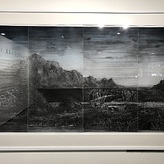 王立星《文人山峰》、余曼《浮翠流丹》、唐承华《行走的风景》、方利民《逍遥游》等作品,则尝试以东方美学下的抽象语言构建各自独特的言说方式。王启凡的水印木刻作品《天问》,由12幅独立的版画组成,以传统的木刻语言和地图式的叙事形式,重述屈原的《天问》这部探索人性终极命题的文学史诗。