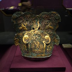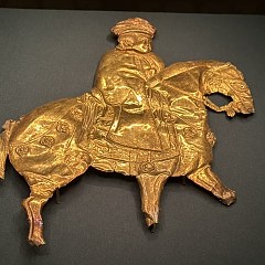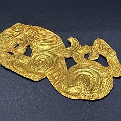展览分为三个单元。第一单元「兴起:草原与早期中国」展现黄金从欧亚草原传入中国的历程,以及商周至汉代贵族如何逐渐接受黄金饰品,形成中原与草原之间频繁互动的物质纽带。