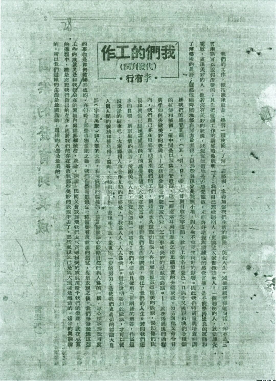 《我们的工作》,李有行,四川省立技艺专科学校校刊《技与艺》发刊词