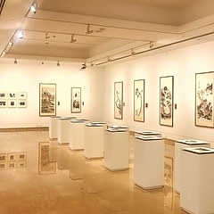 看过的国画很少,不懂得怎么欣赏,自以为是一个没什么中国底蕴的人。但是这次算是给我开开眼了,从来没有一次性看过这么多国画。以前尝试过画国画,在我看来,国画要画好比油画难得多,他变化多端难以掌控,对于运笔的要求要高得多。何香凝先生的画在肆意的劲道里又有着女人的可爱感觉。不如她的梅花,树干部分不细细描绘,梅花却画的像插画一般;再比如她画的马和虎,都比我以往见过的要圆一些 毛发更顺更乖;所以看的时候都会觉得有趣。 而且这次展览里很多画都是多位画家一起画的,可以看到不同画家融合在一起呈现出来的风格也都略有不同,在人物的画法上,颜色运用上,主题意境上都不一样,对我来说也是长见识了。 以前我非常喜欢油画颜料的堆叠呈现的斑斓,国画又是另外一种独有的魅力了。这就是现在流行的莫兰迪色调啊,颜色灰灰的,却有着自己美丽的名字,在一起又是一种更为沉静的氛围。 展览也非常用心,手机扫画就可以听讲解,就是因为我赶时间 每篇导览又太长,没有仔细听完,有些可惜。 对于对中国文化博大精深对中国艺术没有完全了解的人(比如我)真的非常值得来!