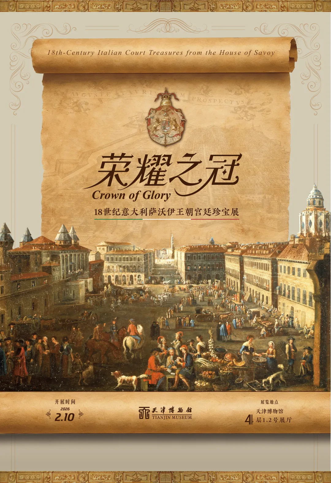 本次展览聚焦18世纪意大利萨沃伊王朝,共呈现超过120件绘画、雕塑、服饰、瓷器和家具等展品,全方位勾勒萨沃伊王室的宫廷生活与艺术风尚,以及风靡欧洲的「中国风」潮流。