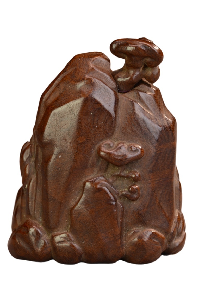 木雕山子鼻烟壶(木雕灵芝盖),清代