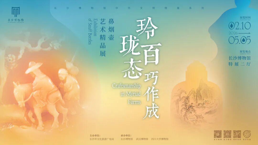 本次展览汇集玉石、金属、陶瓷、琥珀、玻璃、竹木等多种材质的鼻烟壶作品,探索鼻烟壶丰富多彩的制作工艺,以此反映清代人的日常生活、交往方式和审美情趣。亮点展品包括螺钿花蝶纹鼻烟壶、琥珀鱼篓形鼻烟壶、木雕山子鼻烟壶等。