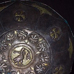 贵霜王朝之前的犍陀罗流行的一种装饰盘,盘中一般以雕刻希腊神话故事为主。此盘中刻有变成牡牛的宙斯神掠夺腓尼基公主欧罗巴的场面。