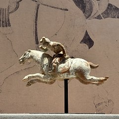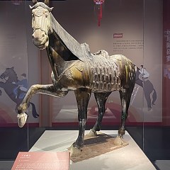 本展是第十五届全运会马术比赛的配套文物展览,共呈现陕西唐三彩艺术博物馆收藏的60件唐代文物,包括三彩舞马俑、彩绘打马球俑、仕女骑马俑等,剖析马在唐代政治、军事、体育等领域的重要地位,反映盛唐开放进取的时代气质。
