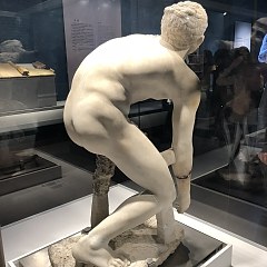 展厅以海蓝色为主色调,营造出「打捞沉船」的氛围,展品包括陶雕塑、陶器、青铜器、玻璃器等,介绍古希腊造船技术、航海技术、雕塑艺术、手工生产和日常生活。