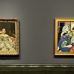 本次展览将展出法国画家安格尔的《莫特西耶夫人肖像》和西班牙艺术家毕加索的《持书的女子》,对比展现两幅画作之间的异同,探索安格尔对毕加索艺术创作的影响。这两幅作品目前分别收藏于英国国家美术馆和美国诺顿·西蒙博物馆,是历史上首次并列展出。