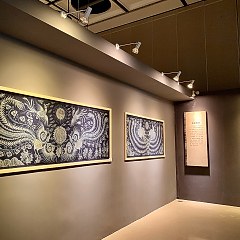 本次展览共展出145幅蜡画、蓝染画和蜡染艺术、30余件蜡染文创、30张非遗传承人照片和数部蜡染技艺音像视频,通过传统蜡染艺术作品与现代蜡染工艺品的互动及展示,为观众介绍苗族蜡染文化。