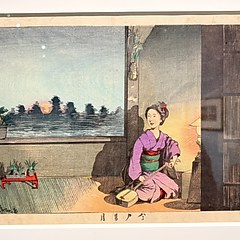 小林清亲(1847-1915)是日本明治时代浮世绘画家,以开创受到西洋画法影响的「光线画」闻名,为明治时期的风景版画带来了重大变革。小林清亲的版画虽以「东京名所」为题,却多表现黄昏时分的景象及黑暗中闪烁的光芒,通过深邃的明暗对比,捕捉城市中残留的江户氛围。他的作品唤起人们的怀旧之情,与同时代浮世绘画家们通过鲜艳色彩表现新时代都市风貌的「开化绘」截然不同。
