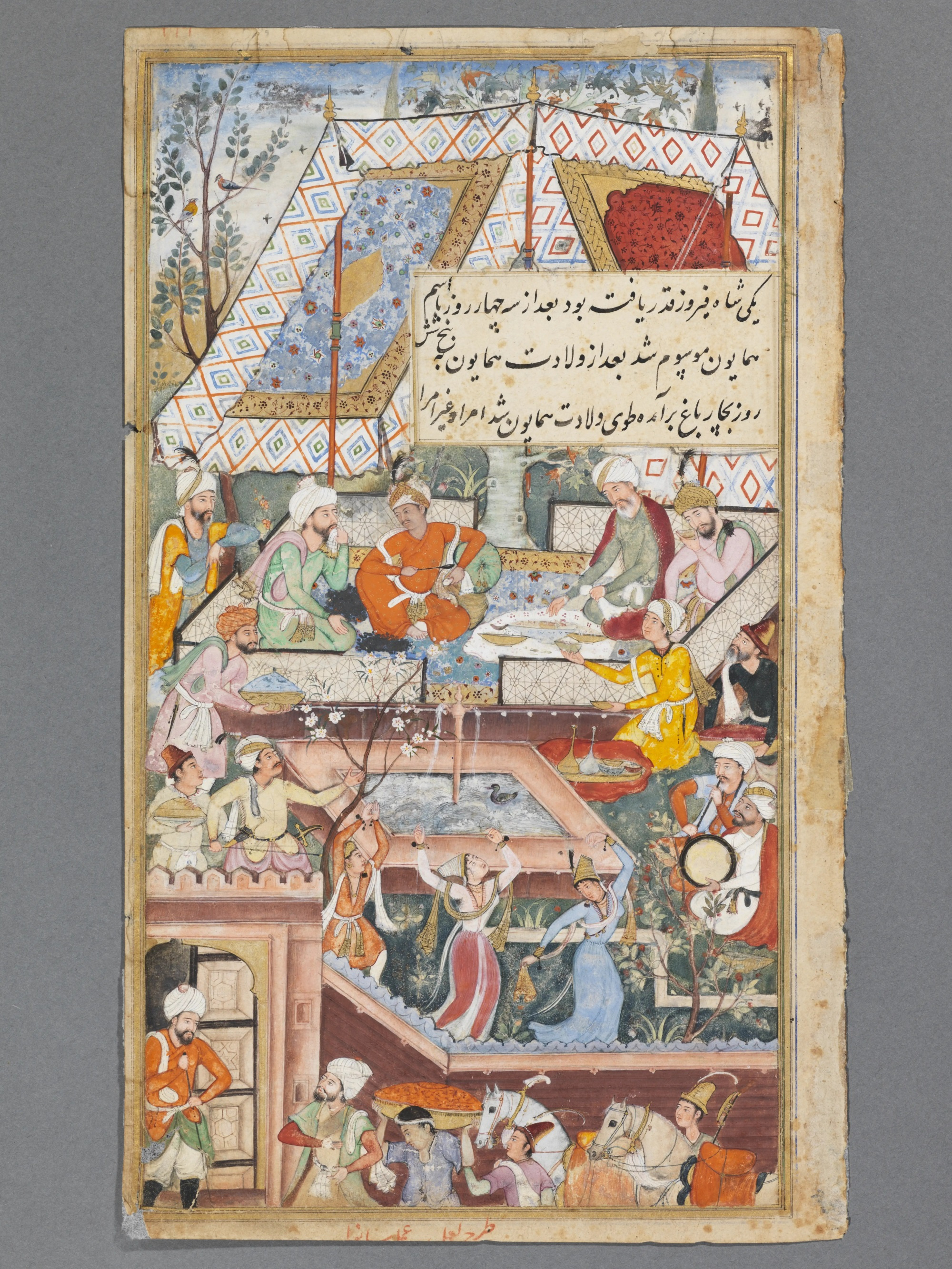 巴布尔为胡马雍诞生举办的花园庆典(《巴布尔回忆录》插图),莫卧儿帝国,约1589年