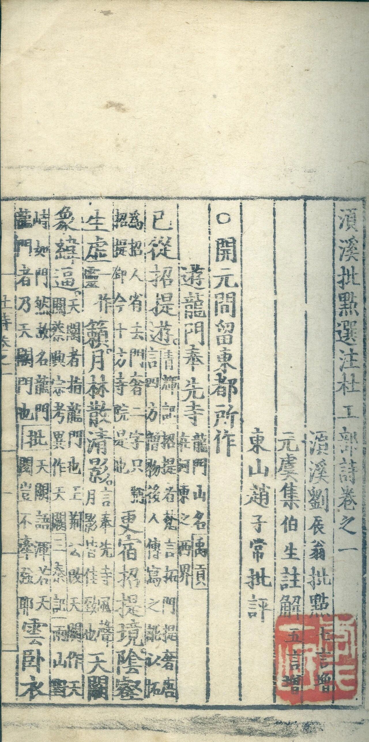 《须溪批点选注杜工部诗》二十二卷(残存五卷),(宋)刘辰翁批点,(元)虞集注解,明正德(1506-1521)黎尧卿重刻本,李一氓赠