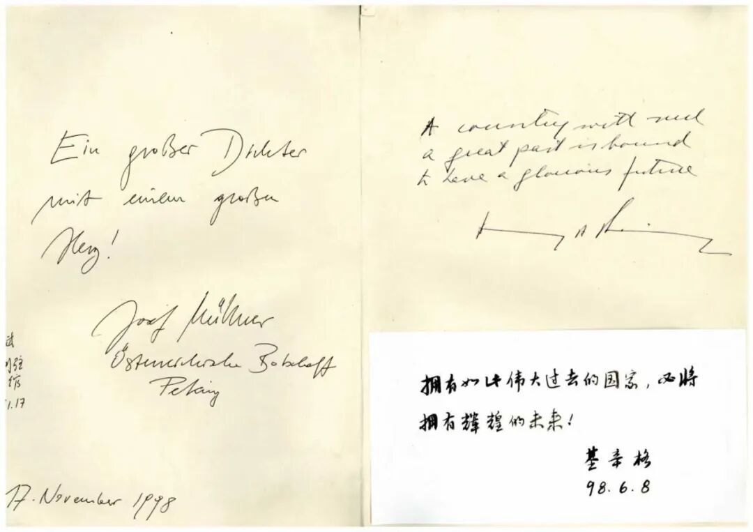 (美国)基辛格题词:「一个产生如此伟大诗人的民族,必将拥有辉煌的未来。」
