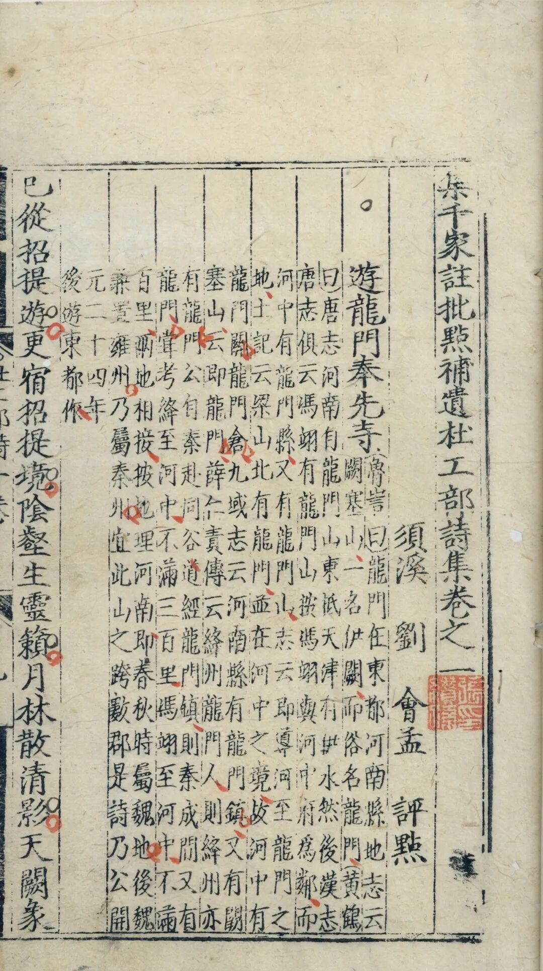 《集千家注批点补遗杜工部诗集》二十卷,(宋)黄鹤补注,(宋)刘辰翁批点,明刻本,文化部文物局赠