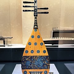 「传统乐器」板块根据乐器「吹、拉、弹、打」的分类方式进行展示,呈现乐器在不同时代的发展特征和历史亮点。值得关注的展品包括元代「万壑松」琴、元末明初二十五弦大瑟,以及根据原件仿制的唐螺钿紫檀五弦琵琶、唐螺钿枫四弦曲项琵琶。