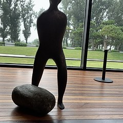 同样值得一提的是,本次展览的区域从室内延伸至户外庭院,将艺术作品陈设在美术馆的绿茵白墙之间,庭院展区可以看到兼容东方气韵及西方美学的雕塑、由文字的轮廓组成的线条曲折的灯箱等。