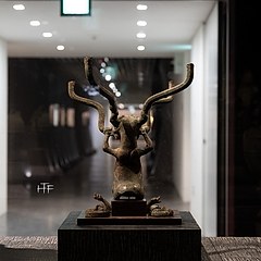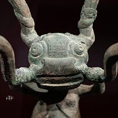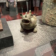 史博馆现有藏品逾6万件,以来自河南博物馆迁台文物及日本战后归还的文物为主。此次展览汇集多件被认定为「国宝」与「重要古物」的古代文物,包括蟠龙方壶、兽型器座、金柄铜短剑。