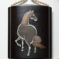 这件圆形刀镡为铜合金材质,表面雕刻着花卉图案。