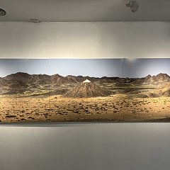展览围绕褚秉超的创作项目《七府环屏》展开。「七府环屏」原本是甘肃崆峒山脉中的一座小山丘,从2015年开始,褚秉超在此进行了测绘、修路、移土、种树、引水、刻字、推石、挖山等一系列行动,试图创造一处全新的、包含着个体意志和艺术想象力的真实景观。然而经过长达七年的努力,山体却并未如他想象的那般「改头换面」。