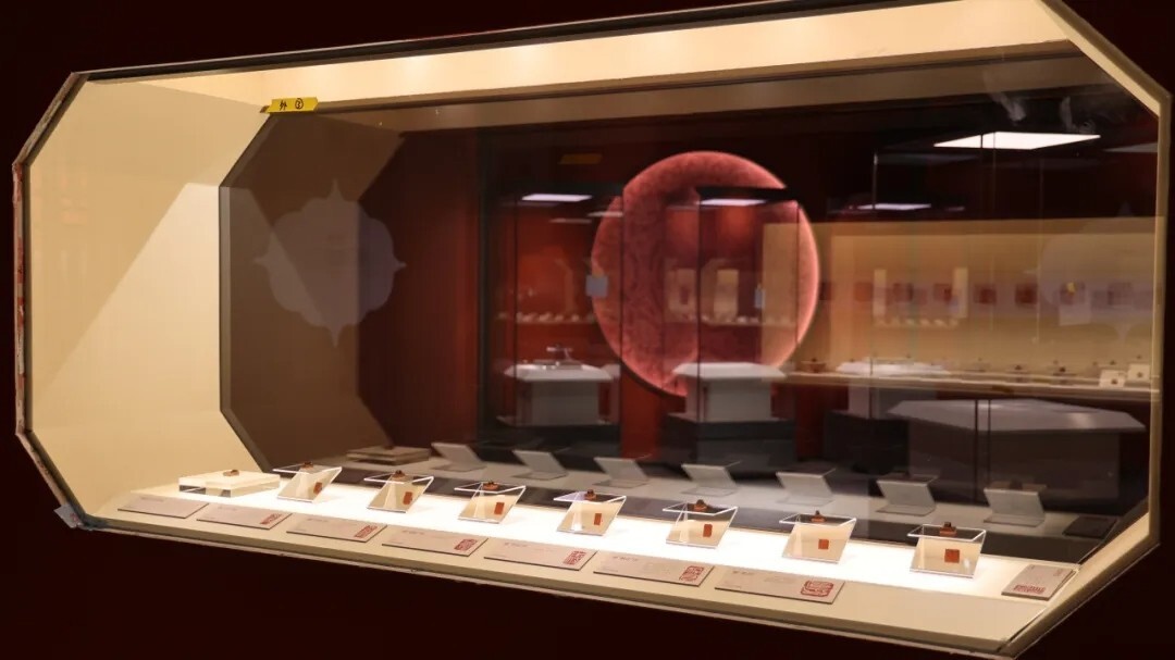 第二单元「万世典则」展示秦汉时期的印章。秦始皇统一六国后,定「玺」为皇帝印章专称,确立百官级别授印制度,印文采用方圆相济的「摹印」体;汉代继承秦制并稍作改易,印风更显古朴典雅。