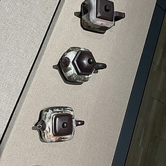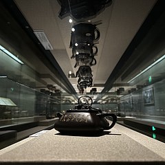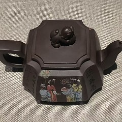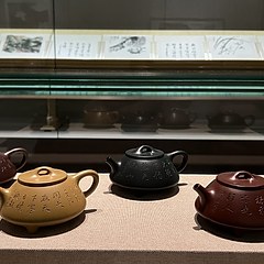 参观者还可以欣赏到画家们在紫砂壶上挥毫的创作。从明末起,许多文人墨客参与到紫砂茶具创作中,让日用器变成诗、书、画、印俱全,富含意趣审美的载体。